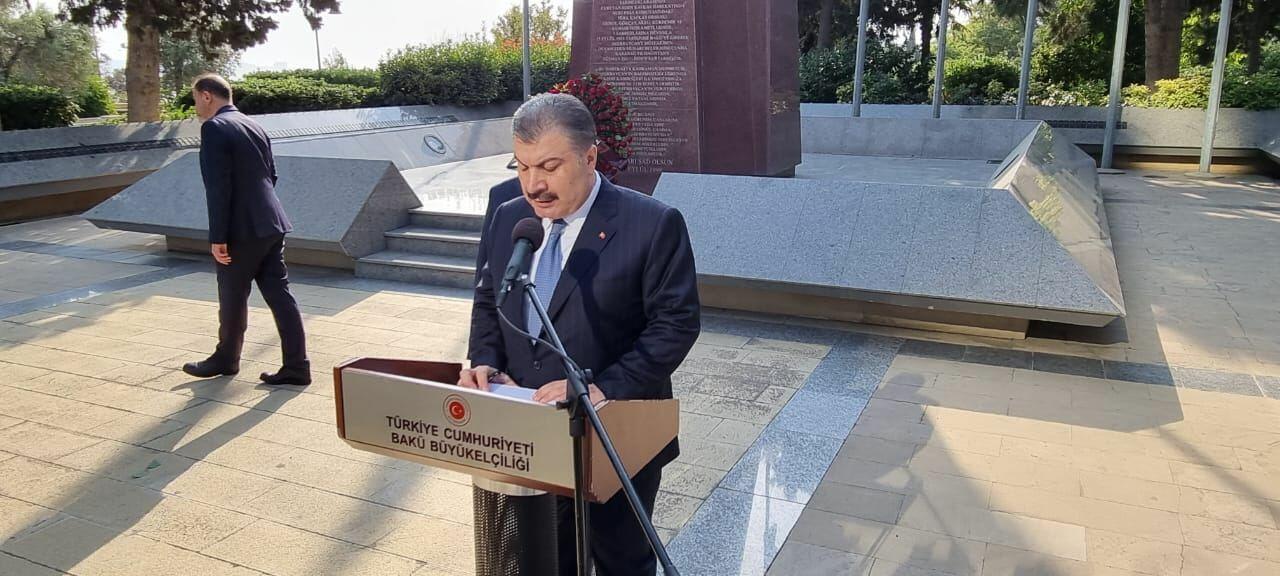 Sonra Fahrettin Koca "Türk şəhidliyi" abidəsinin "Xatirə kitabına" öz ürək sözlərini yazdı.