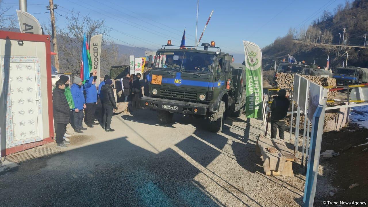 Rusiya sülhməramlılarının müvəqqəti nəzarətində olan ərazilərdə faydalı qazıntı yataqlarının qanunsuz istismarına etiraz olaraq aksiyanın keçirildiyi Laçın yolundan Rusiya sülhməramlı kontingentinə (RSK) məxsus avtomobillərin sərbəst keçidi davam edir.