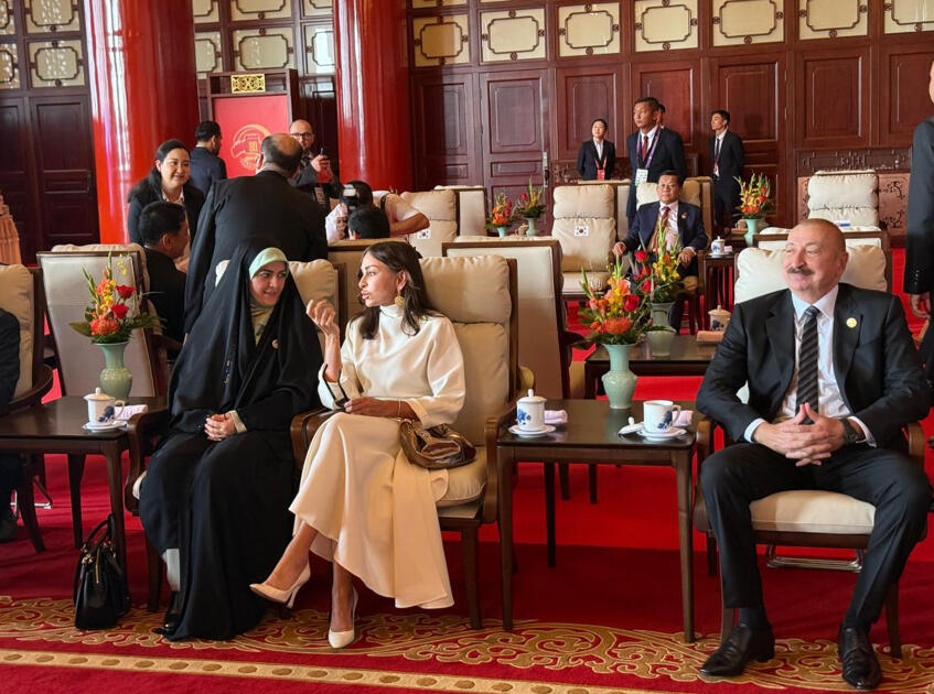 Azərbaycan Respublikasının Prezidenti İlham Əliyev və birinci xanım Mehriban Əliyeva paradı izləmək üçün Çinin paytaxtı Pekindəki Tiananmen Meydanına gəliblər.
