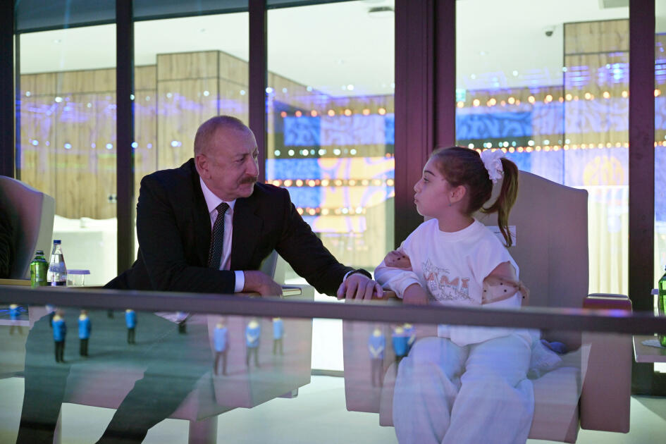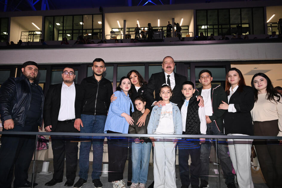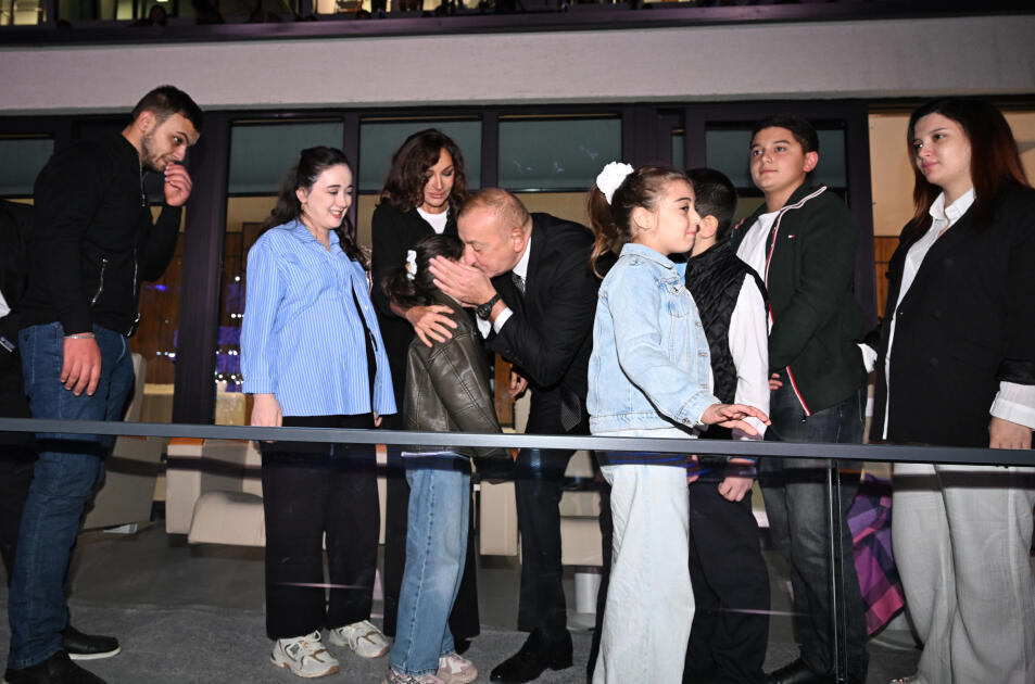 Milli.Az AZƏRTAC-a istinadən bildirir ki, tədbirdən əvvəl Azərbaycan Respublikasının Prezidenti İlham Əliyev və birinci xanım Mehriban Əliyeva Vətən müharibəsi zamanı Gəncəyə raket hücumları nəticəsində valideynlərini, ailə üzvlərini və yaxın qohumlarını itirmiş, həmçinin xəsarət almış uşaqlarla görüşüblər.
