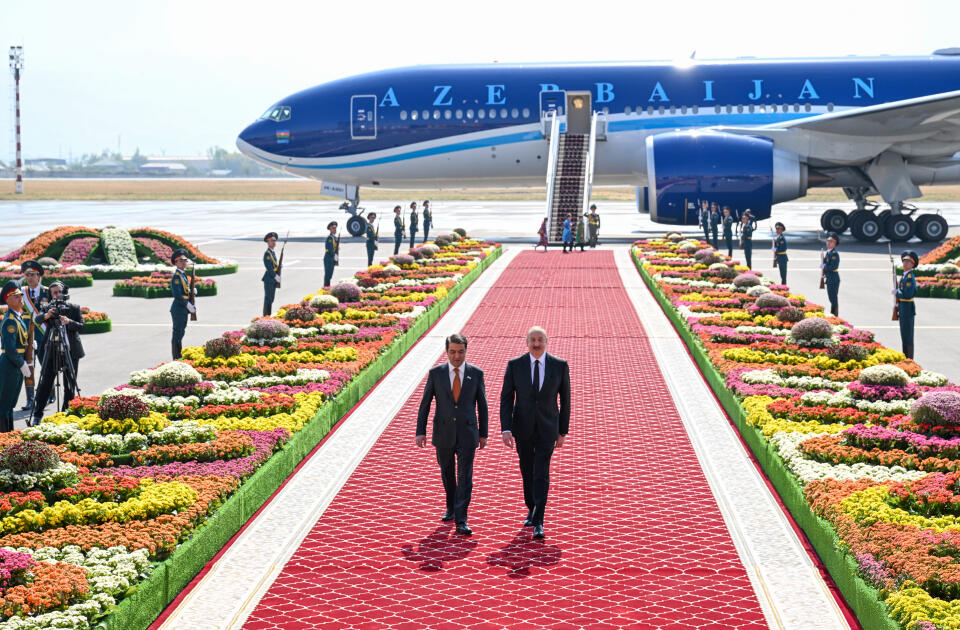 Milli.Az AZƏRTAC-a istinadən xəbər verir ki, Düşənbə Beynəlxalq Aeroportunda dövlətimizin başçısının şərəfinə fəxri qarovul dəstəsi düzülmüşdü.