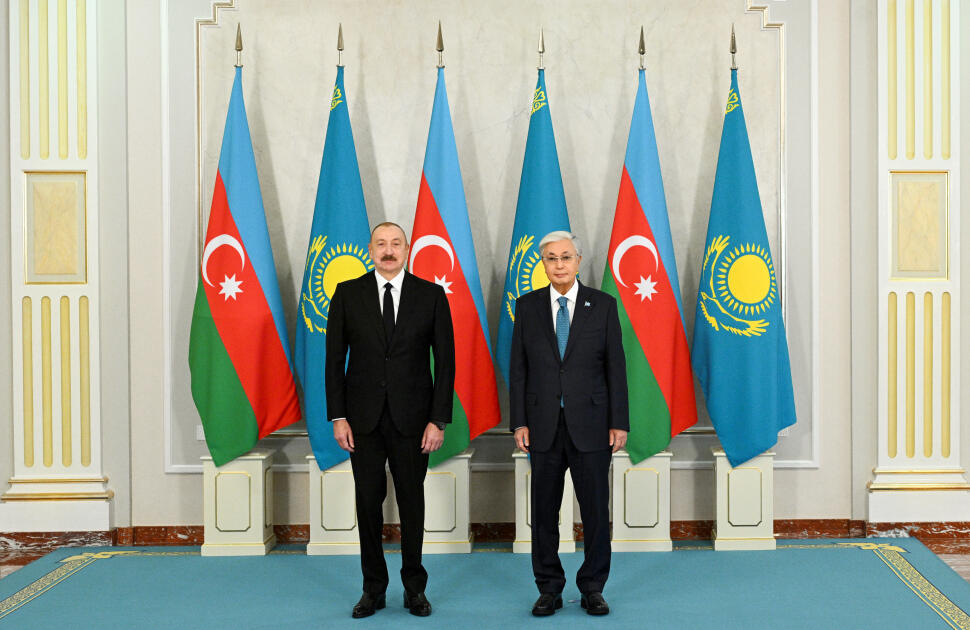 Qazaxıstan Respublikasının Prezidenti Kasım-Jomart Tokayev Azərbaycan Respublikasının Prezidenti İlham Əliyevi qarşıladı.