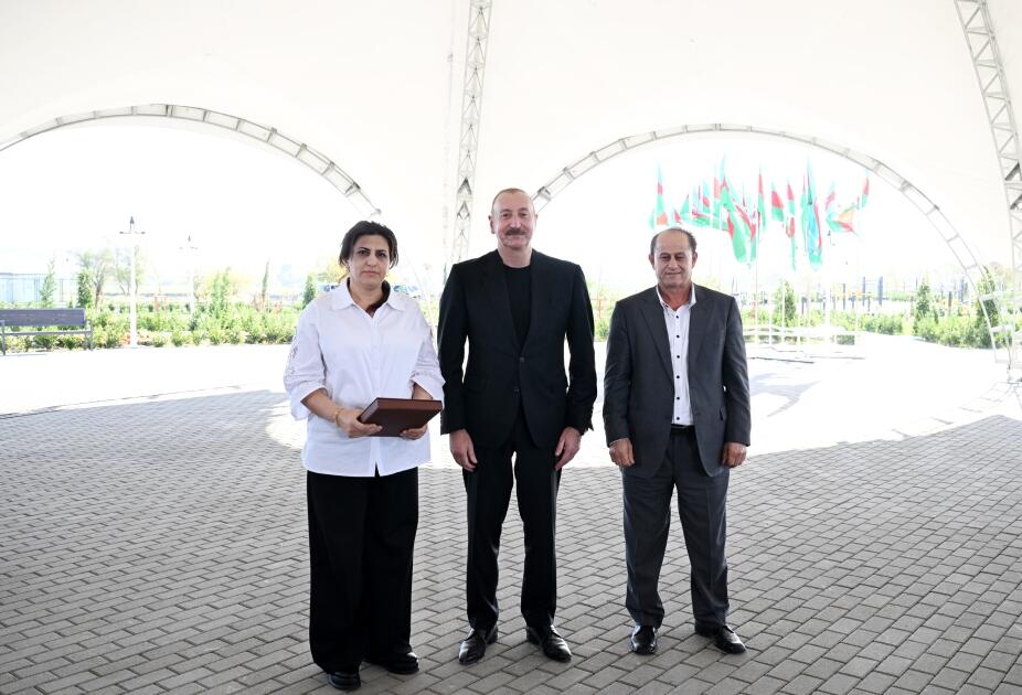 Ermənilər viran qoyub bizim dədə-baba torpaqlarımızı, biz isə qurub-yaradan xalqıq. Biz düşməni torpaqlarımızdan qovmuşuq. İndi də doğma torpağımızda qurub-yaradırıq, şərait yaradırıq, binalar, məscidlər tikirik, tarixi abidələri bərpa edirik. Yəni, biz - bu torpaqların sahibləri qayıtmışıq və burada əbədi yaşayacağıq. Mən sizə də xoşbəxt həyat arzulayıram. Bir daha sizi təbrik edirəm.