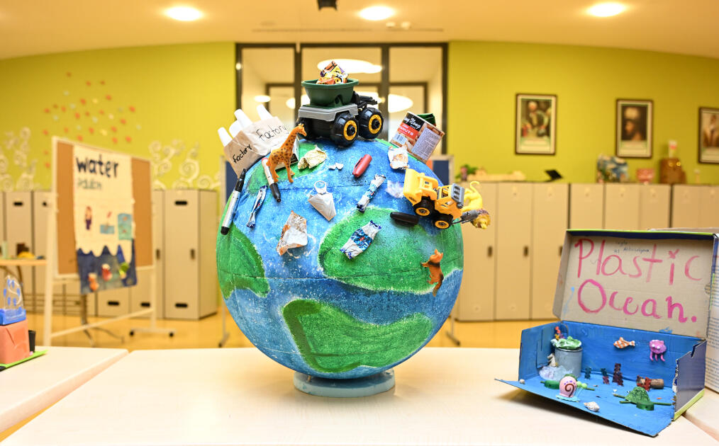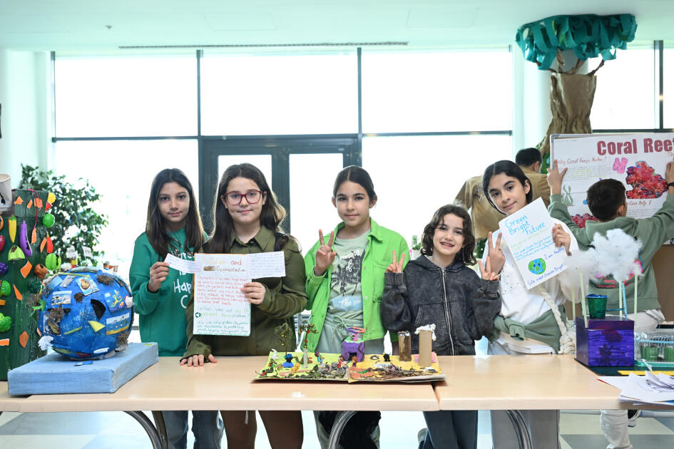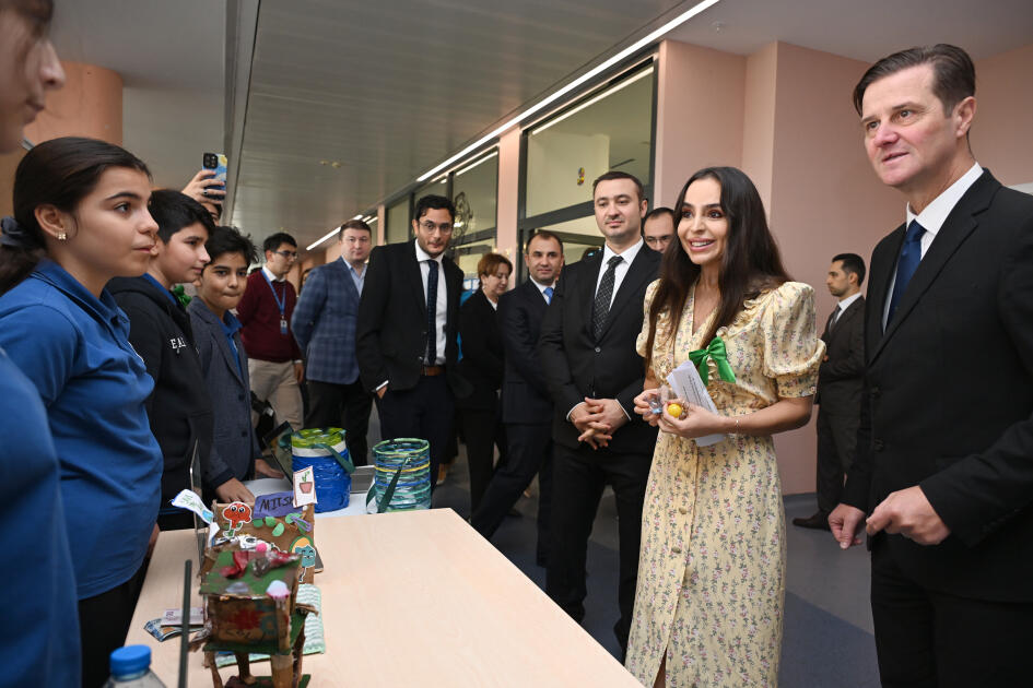 Əvvəlcə Leyla Əliyeva məktəblilərin ətraf mühit problemlərinə, onun həlli yollarına, təbiətin qorunmasına dair ideyalarını əks etdirən əl işlərindən ibarət sərgiyə baxış keçirib.
