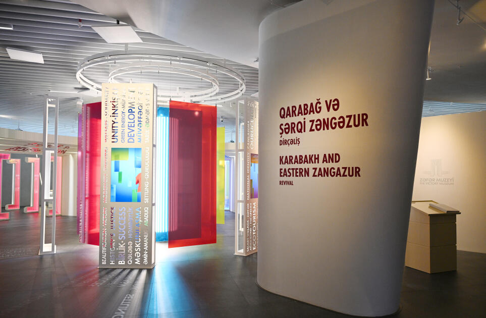 Muzeyin "Qarabağ və Şərqi Zəngəzur. Əsrlərin hekayəsi" adlı birinci zalında Azərbaycanın mədəniyyət beşiyi olan Qarabağın təbii gözəlliyi, tarixi memarlıq baxımından zənginliyi təqdim edilir. Zalın divarındakı kitab instalyasiyalarında Ümummilli Lider Heydər Əliyevin bölgənin sosial-iqtisadi inkişafına verdiyi töhfələrə dair geniş məlumatlar var.