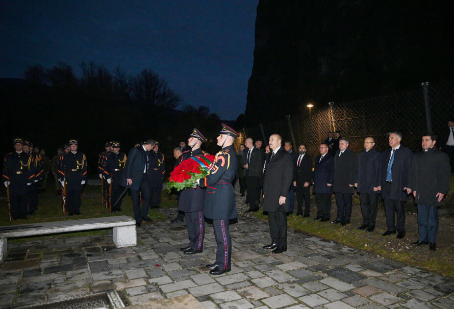 Prezident İlham Əliyev və Prezident Peter Pelleqrini abidənin önünə əklil qoydular.