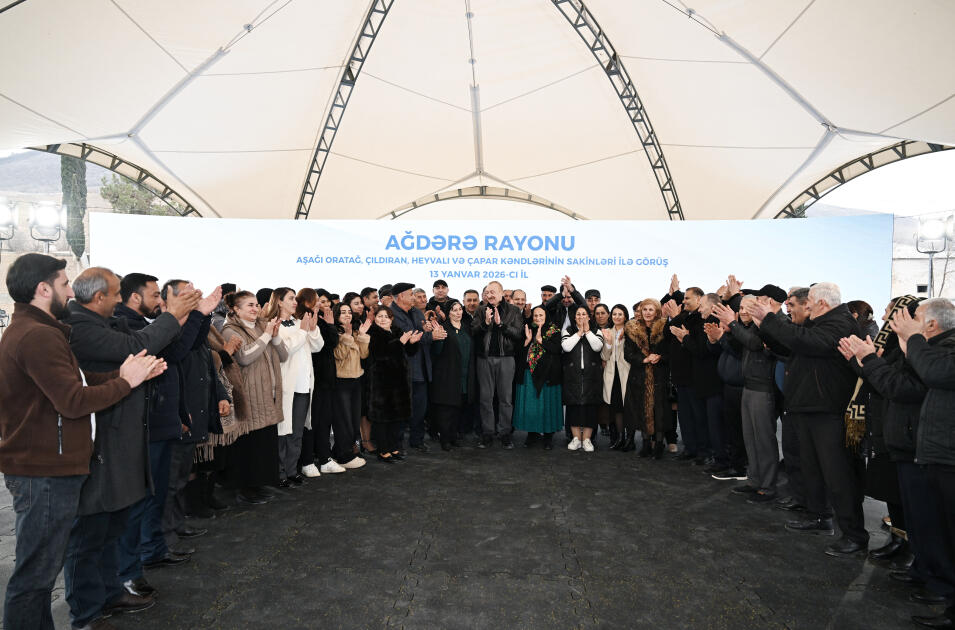 Milli.Az xəbər verir ki, Azərbaycan Respublikasının Prezidenti İlham Əliyev yanvarın 13-də Ağdərə rayonunun Aşağı Oratağ kəndində Aşağı Oratağ, Çıldıran, Heyvalı və Çapar kəndlərinin sakinləri ilə görüşüb.