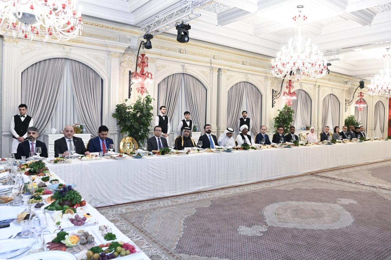 Daha sonra, Azərbaycanda akkreditə olunmuş diplomatik korpusun duayeni, Mərakeş Krallığının ölkəmizdəki səfiri Adil Embarş çıxış edərək, Ramazan ayı münasibətilə təbriklərini diqqətə çatdırıb.