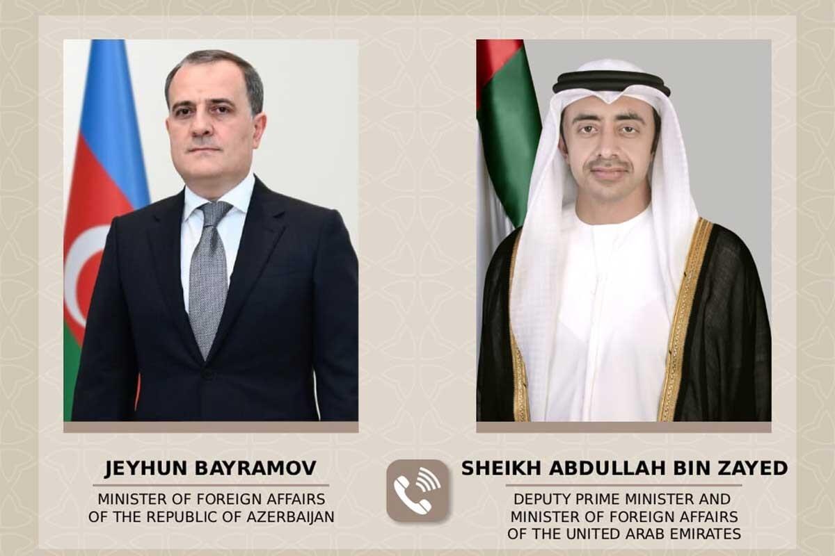 Bu gün Azərbaycan Respublikasının xarici işlər naziri Ceyhun Bayramov ilə Birləşmiş Ərəb Əmirliklərinin Baş nazirinin müavini və xarici işlər naziri Abdullah bin Zayed Əl Nəhyan arasında telefon danışığı aparılıb.