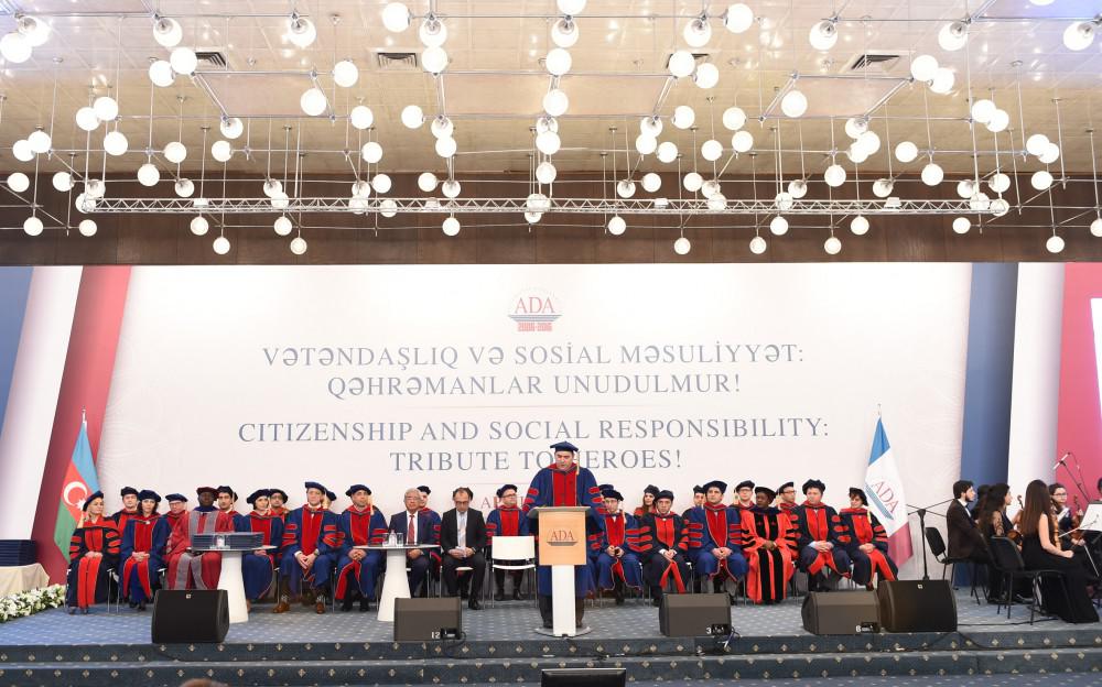- On yaşı yenicə tamam olmuş "ADA" Universitetinin ilk bakalavr sinfi məzun olur. Belə bir əlamətdar gündə sizinlə bir yerdə olmağa çox şadam və məzunların hər birini səmimi qəlbdən salamlayıram.