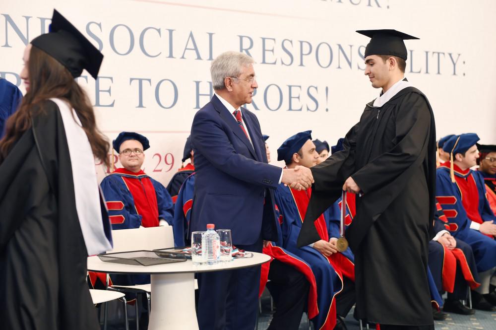 "ADA" Universitetinin rektoru professor Hafiz Paşayev universitetin ilk bakalavr sinfinin məzun olması münasibətilə sevinc hissi keçirdiklərini bildirdi. Qeyd etdi ki, tədbirin bu əzəmətli sarayda keçirilməsinin rəmzi mənası var. Belə ki, 1994-cü ildə "Gülüstan" sarayında "Əsrin müqaviləsi"nin imzalanması mərasimi olub. Məhz bu zalda uzaqgörən lider Heydər Əliyev müasir Azərbaycanın təməl daşını qoyub. Məhz burada ölkənin "qara qızıl" sərvətinin çətinliklə qazanılmış müstəqilliyimizin möhkəmlənməsinə yönəlməsi haqda qərar imzalanıb. Onun nəticəsidir ki, bu məkanda keçirilən mərasim "insan qızılı" haqqındadır.