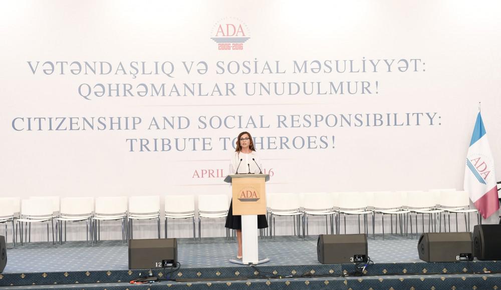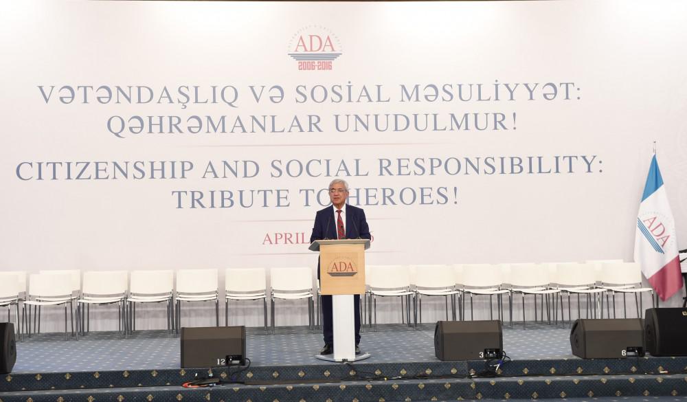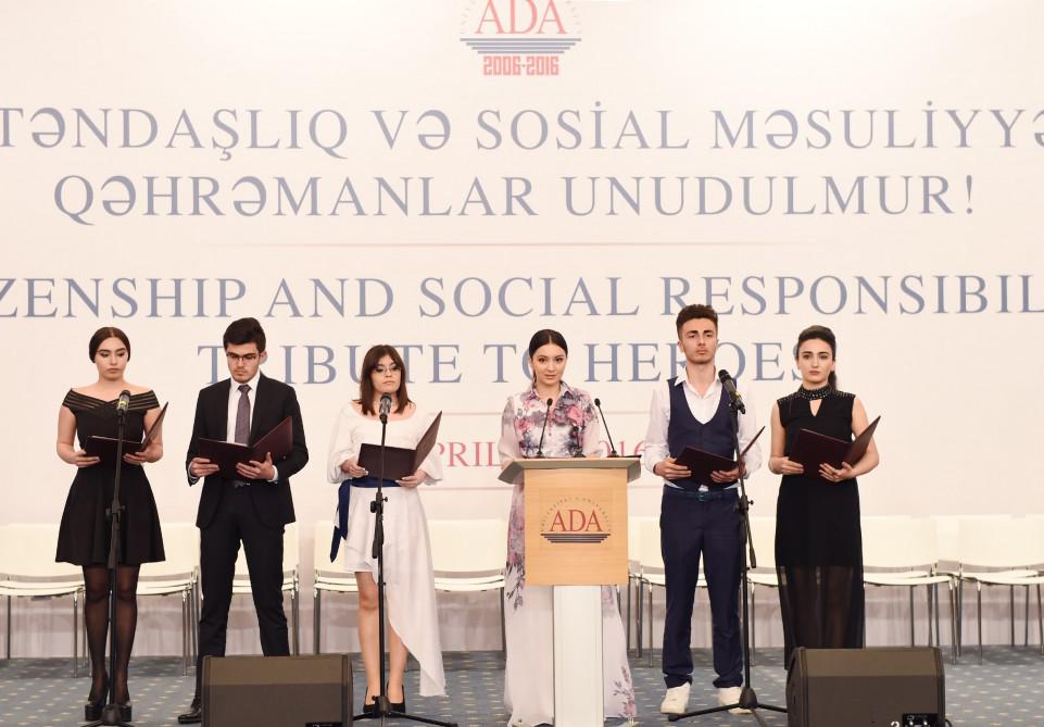 Aprelin 29-da "Gülüstan" sarayında "ADA" Universitetinin məzun buraxılışı və "Vətəndaşlıq və sosial məsuliyyət: qəhrəmanlar unudulmur" adlı tədbir keçirilib.
