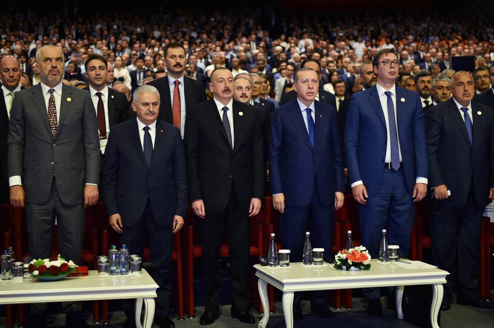 Türkiyə bu gün dünya miqyasında böyük bir gücdür. Türkiyə dünya gündəliyinin bir çox məsələlərində həlledici sözə malikdir. Bütün bu uğurlar mənim qardaşım Prezident Ərdoğanın liderliyi ilə əldə edilibdir. Bu gün Türkiyə uğurla, sürətlə inkişaf edir. Türkiyə Prezident Ərdoğanın liderliyi ilə çox böyük və şərəfli yol keçmişdir. Bugünkü toplantı bunun təzahürüdür. Türkiyə gücləndikcə biz də güclənirik, biz də sevinirik. Fürsətdən istifadə edərək qardaş türk xalqına bütün Azərbaycan bacı-qardaşlarının səmimi salamlarını çatdırıram.