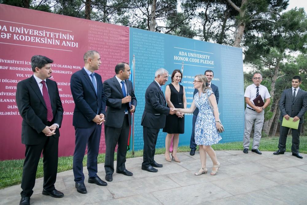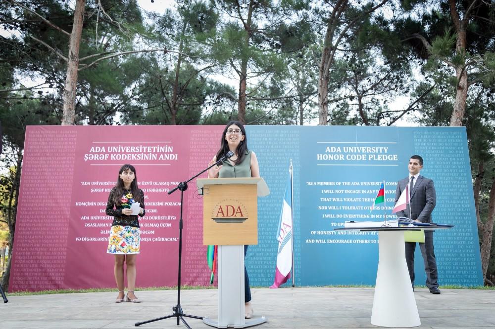 "ADA" Universiteti yeni tədris ilində ənənəvi "Şərəf andiçmə mərasimi"ni keçirib. Bu ali təhsil ocağına qəbul olunan 500-dən çox bakalavr və magistr, eləcə də müəllim heyətinin yeni üzvləri universitetin Şərəf Məcəlləsini imzalayaraq sənədin akademik əxlaq və dürüstlüklə bağlı beş əsas qaydasına riayət edəcəklərinə söz veriblər. Bu qaydalar tədris prosesində və imtahan zamanı yalan danışmamaq, köçürməmək, plagiatlıq etməmək, ayrı-seçkilik salmamaq və bu müddəaları pozmaqda başqalarına yardım etməməyi nəzərdə tutur.