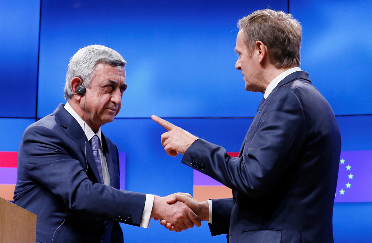 Ermənistanın hələ 2013-cü ilin noyabrında Vilnüsdəki "Şərq tərəfdaşlığı" sammitində Avropa Birliyi ilə "Assosiasiya və azad ticarət zonası haqqında saziş"i imzalaması gözlənilirdi. Lakin həmin ilin sentyabrda Ermənistan prezidenti Serj Sarkisyanın Moskvaya səfər edib rusiyalı həmkarı Vladimir Putinlə görüşməsindən sonra, yəni sazişin imzalanmasına cəmi 2 ay qalmış Ermənistan bu fikrindən daşınaraq Gömrük İttifaqına qoşulmaq və Avrasiya inteqrasiyasında iştirak etmək niyyətində olduğunu bəyan etdi, 2015-ci ilin yanvarında isə Avrasiya İqtisadi Birliyinə qoşuldu.