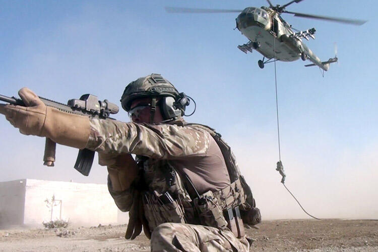 Milli.Az Müdafiə Nazirliyinin mətbuat xidmətinə istinadən bildirir ki, təlimin planına əsasən hava desant hazırlığı mərhələsində xüsusi təyinatlı bölmələrin helikopter vasitəsi ilə yerdəyişməsi, mühafizənin təşkili və təxliyə üsulları məşq etdirilib.