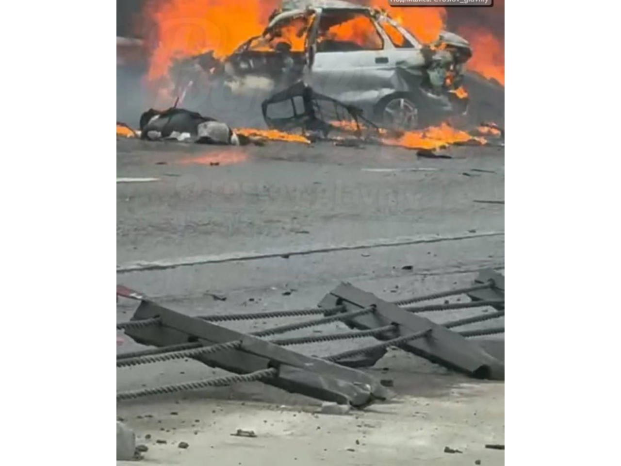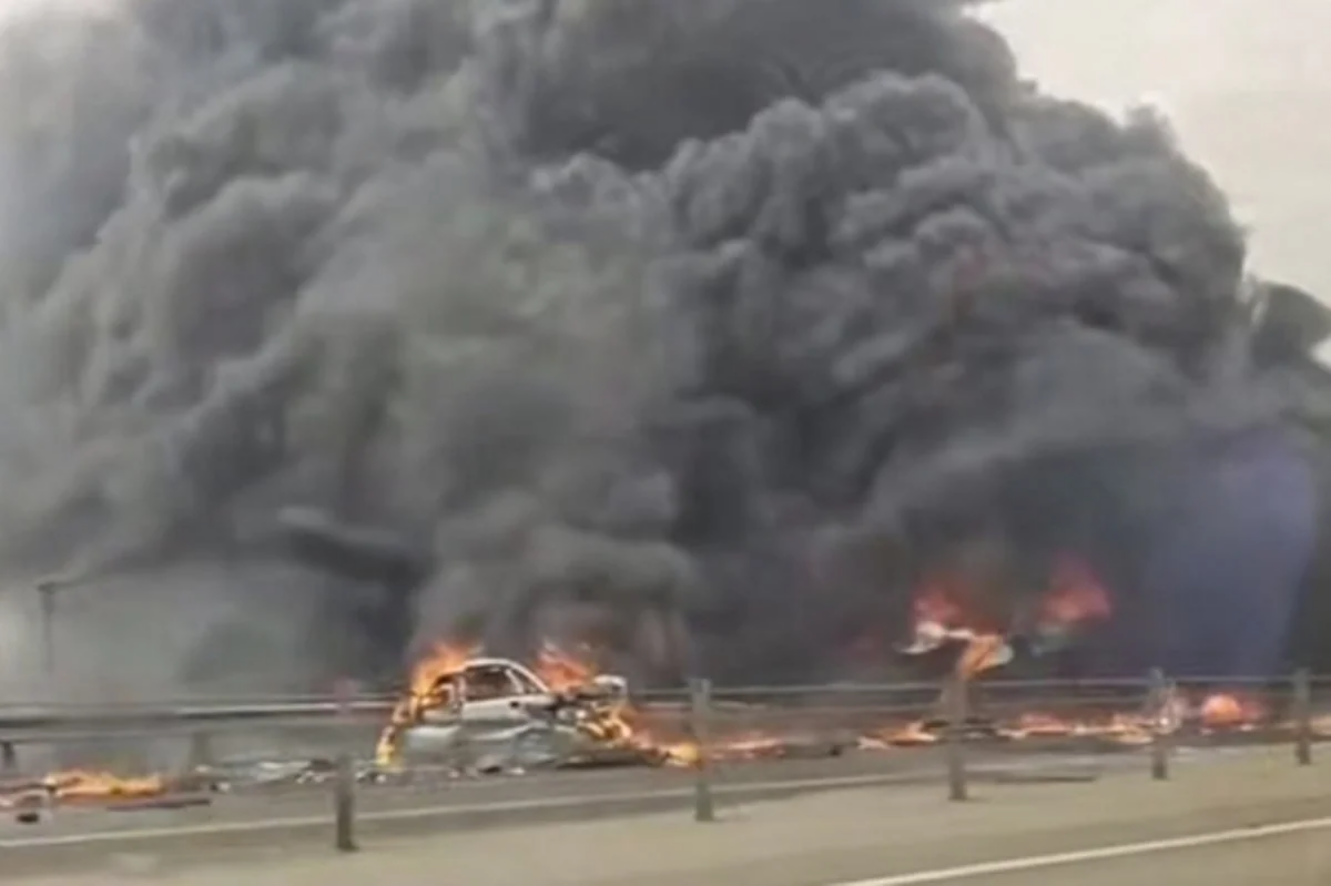 Hadisə şahidlərin yaydığı kadrlarda bir neçə avtomobilin alov içində olduğu görünür. Yanğın və qara tüstü səmaya qalxıb və kilometrlərlə uzaqdan görünüb. İnsanlar maşınların içərisində qalan sürücüləri və sərnişinləri xilas etməyə çalışıblar.
