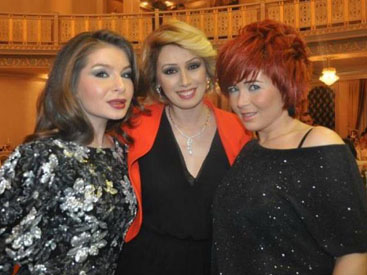 2. Elə həmin toyda çəkilən digər bir fotoşəkil - model Züleyxa Akçurina, müğənnilər Roza Zərgərli və Elnarə.