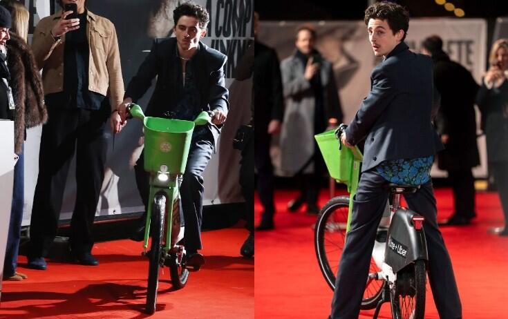 Milli.Az xəbər verir ki, buna səbəb aktyorun film qalasına velosipedlə qatılması olub. Tıxacda qaldığı üçün maşın yerinə velosipeddən istifadə etməli olduğunu deyən Timoti qırmızı xalçada elə həmin nəqliyyat vasitəsi ilə pozlar verib.