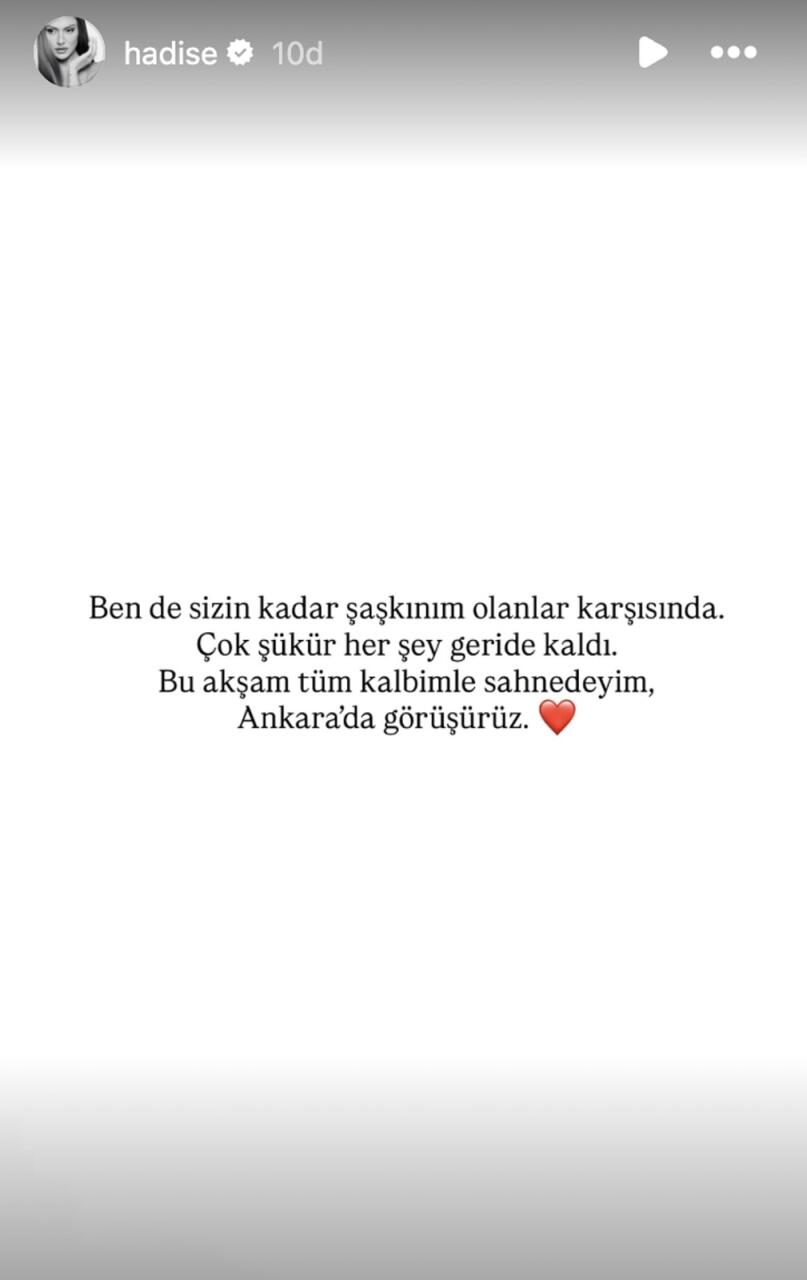 Hadisə sərbəst buraxıldıqdan sonra sosial media hesabında paylaşım edərək bu axşam Ankara səhnəsində çıxış edəcəyini bildirib. O, açıqlamasında bunları yazıb: