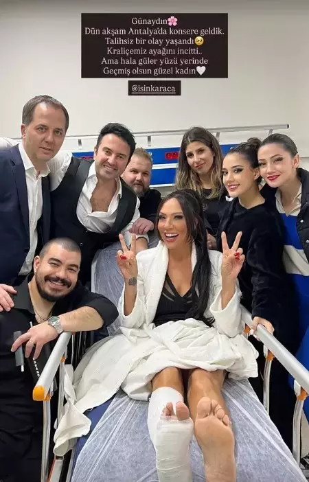 Türkiyəli məşhur müğənni Işın Karaca səhnədə yıxılaraq ayağından zədə alıb.