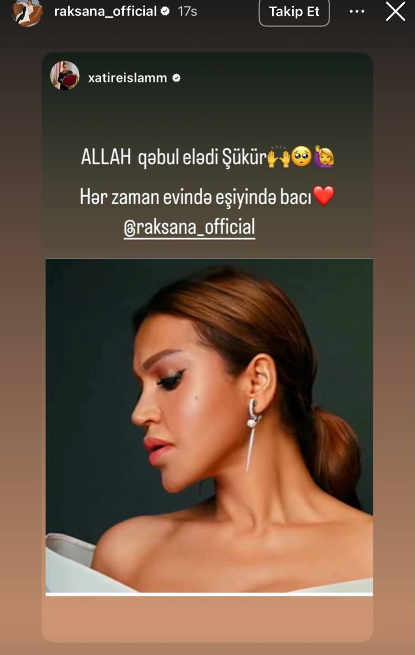 Milli.Az xəbər verir ki, o, azadlığa çıxma anlarına aid görüntüləri və ona göndərilən təbrikləri hekayə bölməsində yerləşdirib. Rəqsanə həmçinin sənət dostlarının paylaşdıqları dəstək mesajlarını da öz "story"sində paylaşıb.