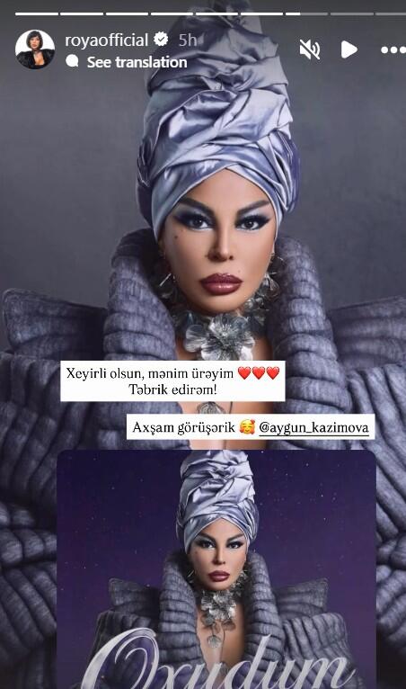 Xalq artisti Röya Ayxan həmkarı Aygün Kazımovanı ad günü münasibətilə təbrik edib.