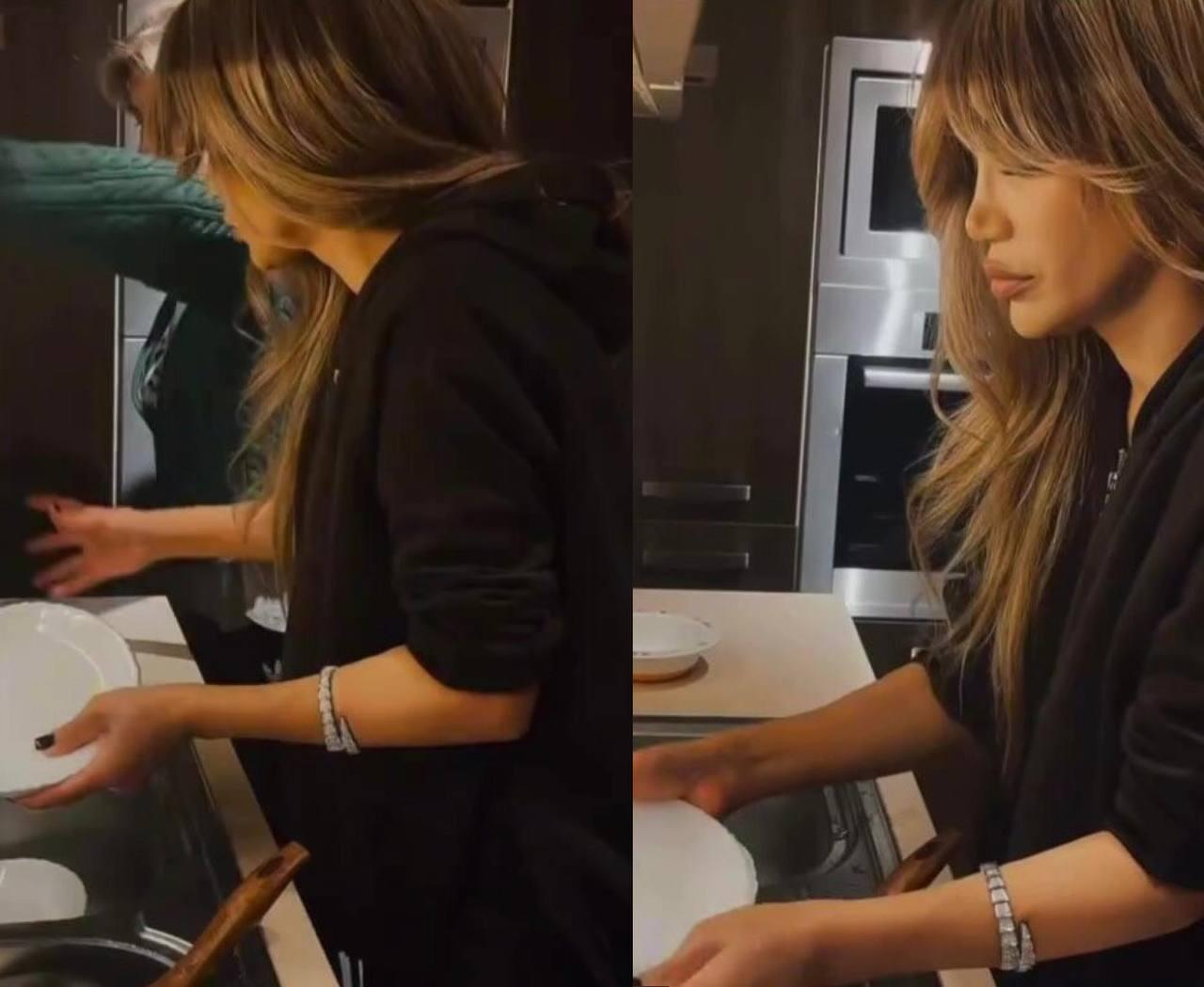 Sənətçi bu dəfə qeyri-adi obrazda - ev şəraitində qab yuyarkən görüntülənib.