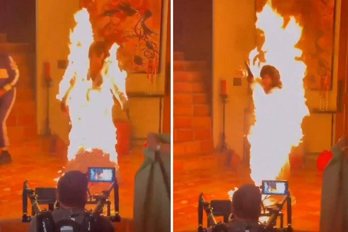 Milli.Az xəbər verir ki, çəkiliş zamanı ssenariyə uyğun olaraq istifadə edilən alov effektləri nəzarətdən çıxıb. Nəticədə məşhur müğənninin geyimi bir anda alışıb. Hadisə o qədər sürətlə baş verib ki, setdə qısa müddətli panika yaşanıb.