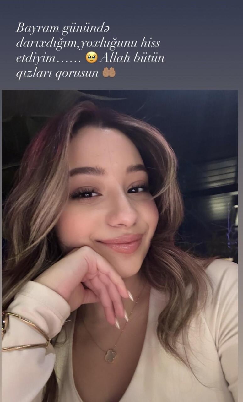 "Bayram günündə darıxdığım, yoxluğunu hiss etdiyim. Allah bütün qızları qorusun. Ananın birdənəsi".