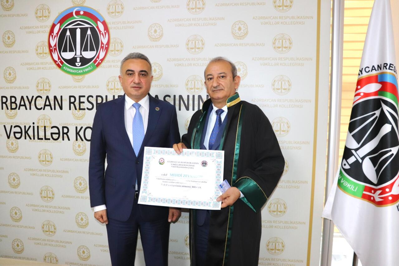 Daha sonra iclasın gündəliyinə uyğun olaraq vəkilliyə qəbulla bağlı məsələyə baxılıb. İxtisas imtahanlarının yazılı və şifahi mərhələlərini, habelə icbari təlim proqramını müvəffəqiyyətlə başa vuran namizədlərin andiçmə mərasimi keçirilib. Namizədlər vəkil etikası və peşə borclarına sadiq qalacaqlarına dair and içərək Kollegiyanın sıralarına qəbul olunublar. Onlara vəsiqələr təqdim edilib, gələcək fəaliyyətlərində uğurlar arzulanıb.