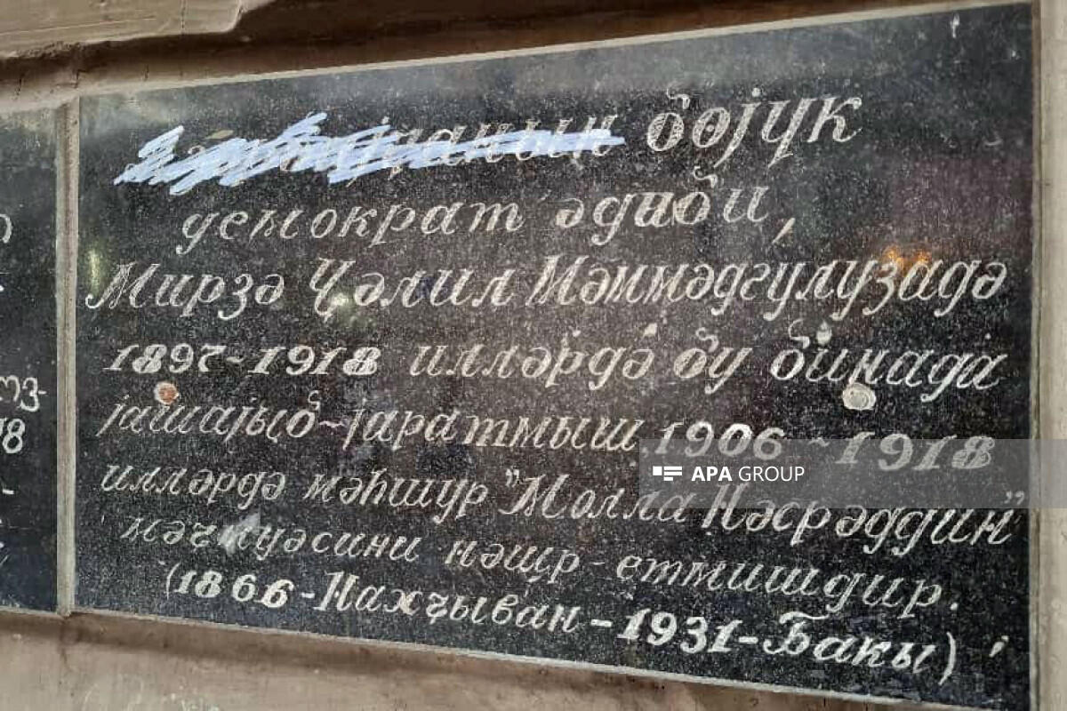 Milli.Az xəbər verir ki, barelyefdəki kiril qrafikasında olan "Azərbaycanın" yazısının üzəri ağ markerlə cızılıb və yazı oxunmaz hala gətirilib.