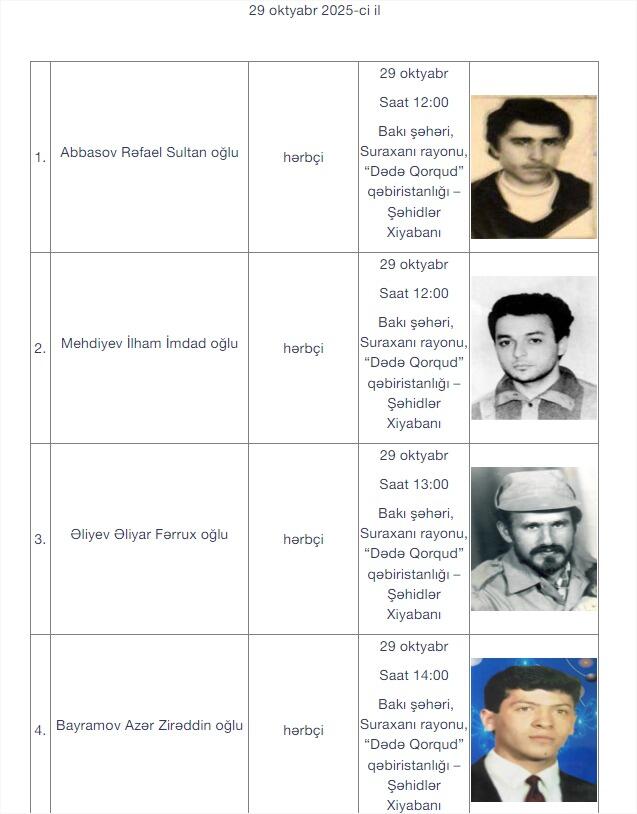 I Qarabağ müharibəsinin daha 16 itkin-şəhidinin qalıqları dəfn olunacaq.