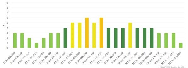 Geomaqnit sahə dekabrın 4-də Günəşdən atılan tac kütləsi hesabına G1 (mülayim) səviyyədə olacaq. Bu hal dekabrın 6-da baş vermiş tac kültə atılması hesabına 10 dekabr tarixində də davam edəcək.