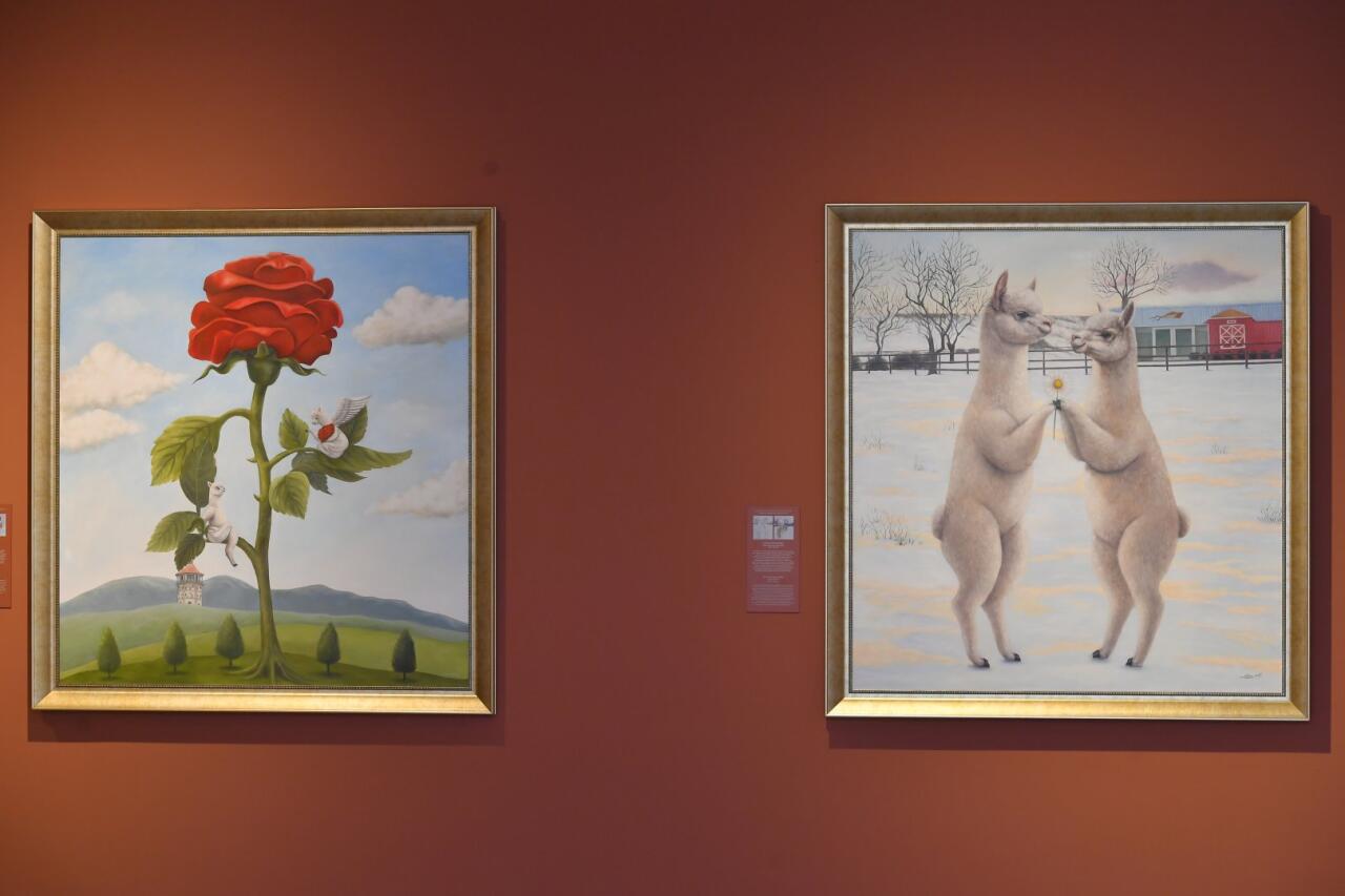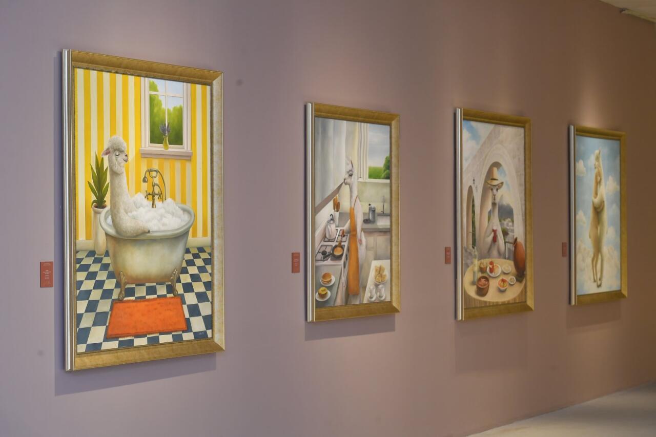 Ziyarətçilər rəssamın xüsusi olaraq Bakı sərgisi üçün yaratdığı əsərləri də görə bilər. İlk dəfə təqdim edilən bu əsərlərdə müəllif qəhrəmanlarını Bakının və Şamaxının tarixi abidələri, görməli məkanlarında təsvir edir: Şamaxıdakı Alpaka fermasında, Bakının Şeytan çarxında, Bakı bulvarını seyr edərkən, Heydər Əliyev Mərkəzinin qarşısında və digər məkanlarda.
