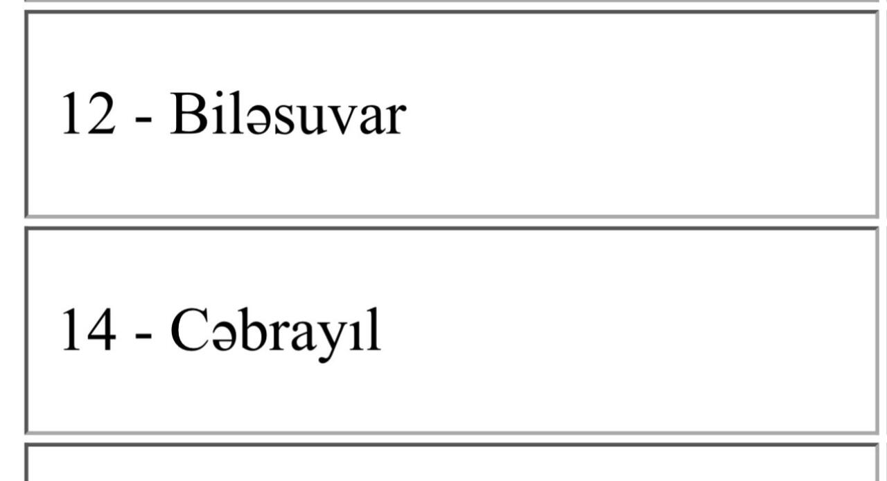 Milli.Az xəbər verir ki, mövcud sistemdə 12 Biləsuvar, 14 isə Cəbrayıl rayonunun kodudur.