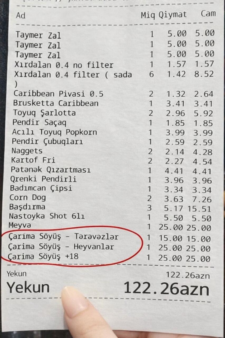 Belə ki, hesabda 3 fərqli növ söyüşə görə cərimə yazıldığı göstərilib.