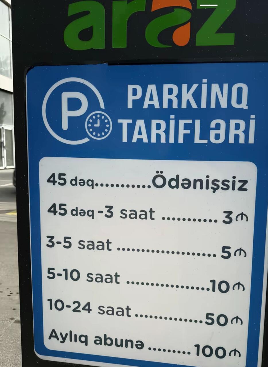 Məlumata görə, ilk 45 dəqiqə parkinqdən istifadə ödənişsizdir. Lakin bu müddətdən sonra qiymətlər kəskin artır.