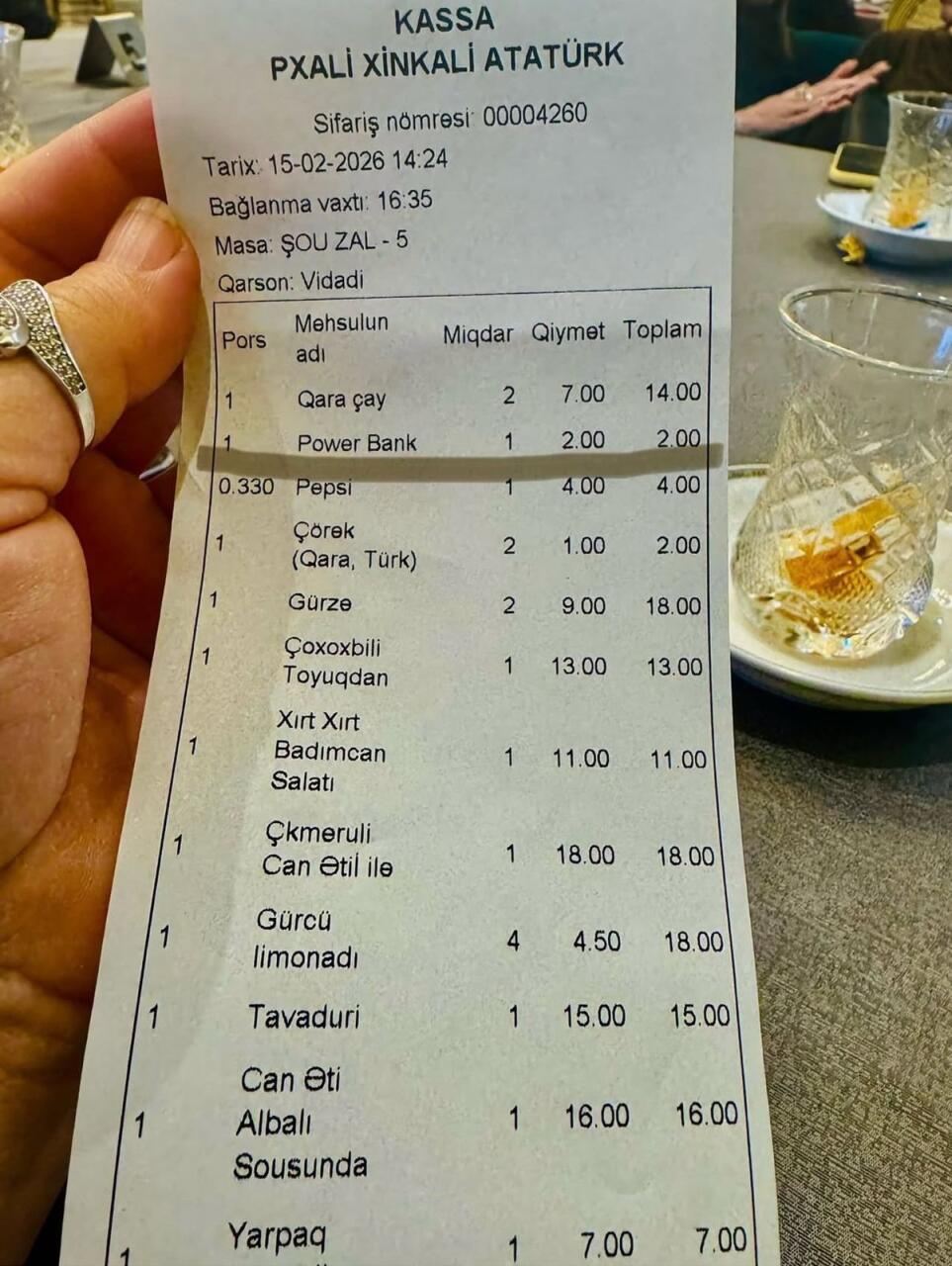 Şikayətçi 10 faiz servis haqqı tətbiq olunan bir restoranda bu vəziyyətin qəbuledilməz olduğunu vurğulayıb. Müştəri bu cür hallarla indiyədək qarşılaşmadığını da nəzərə çatdırıb.