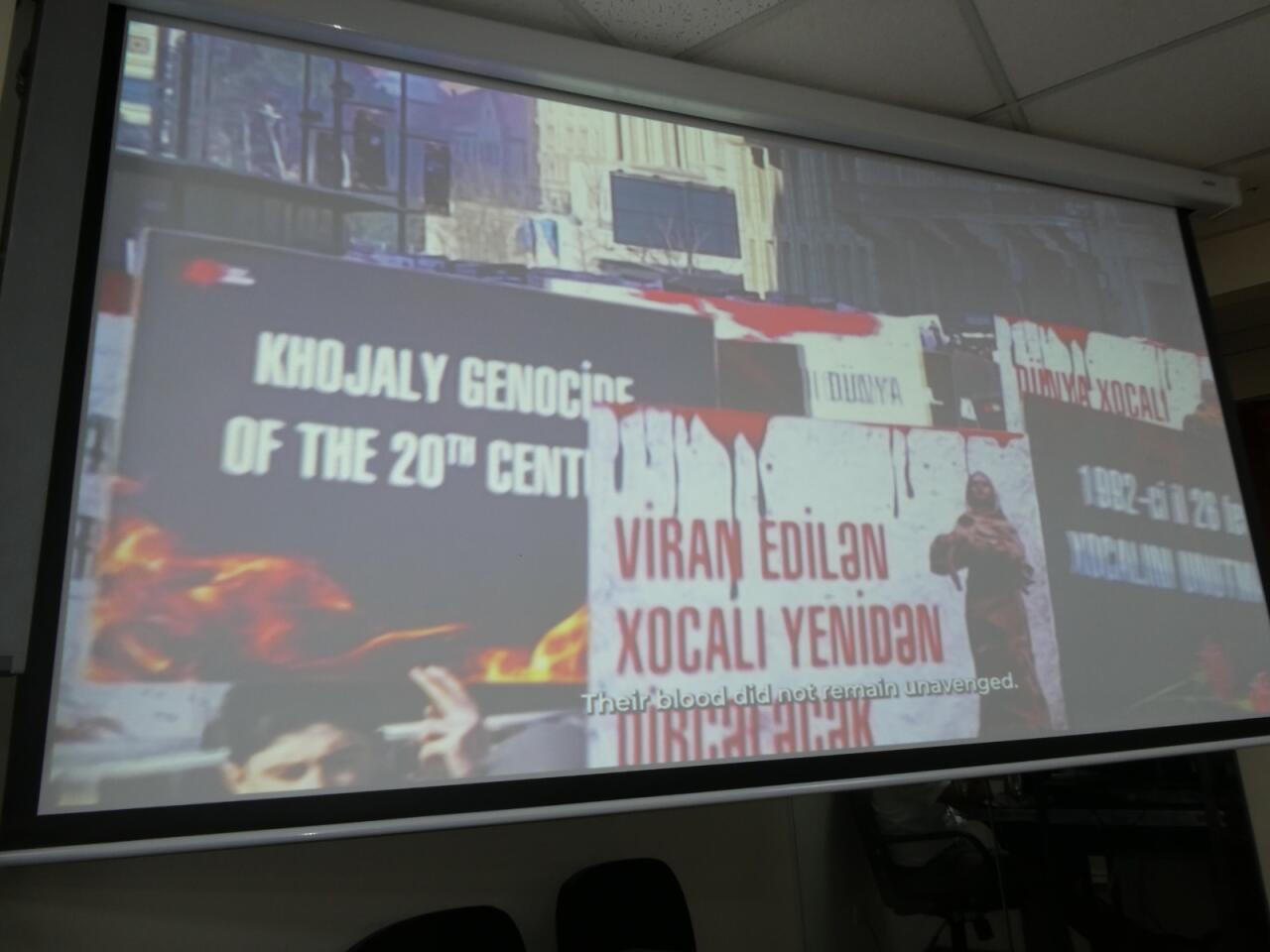 Tədbir zamanı Xocalı soyqırımı haqqında sənədli film nümayiş etdirilib, iştirakçılara qanlı faciənin tarixinə dair broşür və materiallar təqdim olunub.