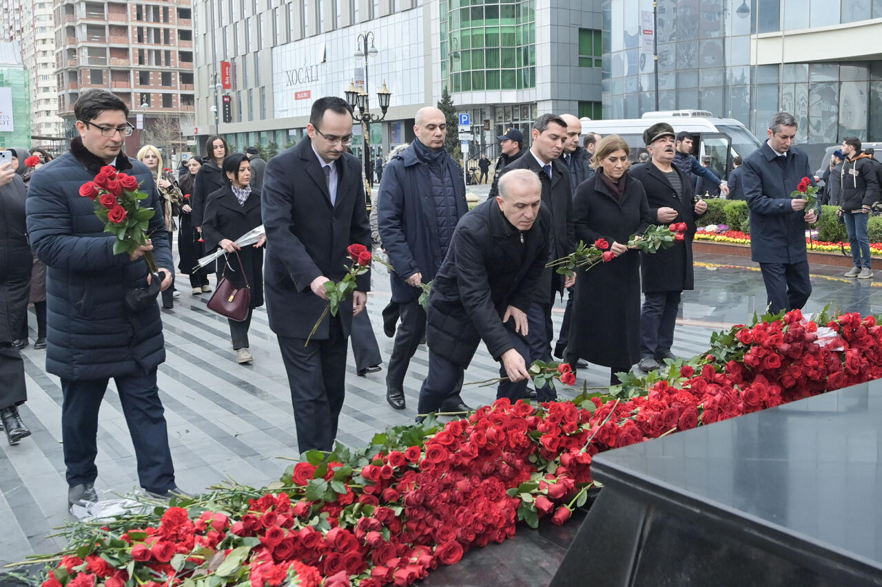 Milli.Az xəbər verir ki, Xocalı şəhidlərinin xatirəsinə ucaldılmış abidənin önünə güllər düzülüb və faciə qurbanları dərin ehtiramla yad olunub.