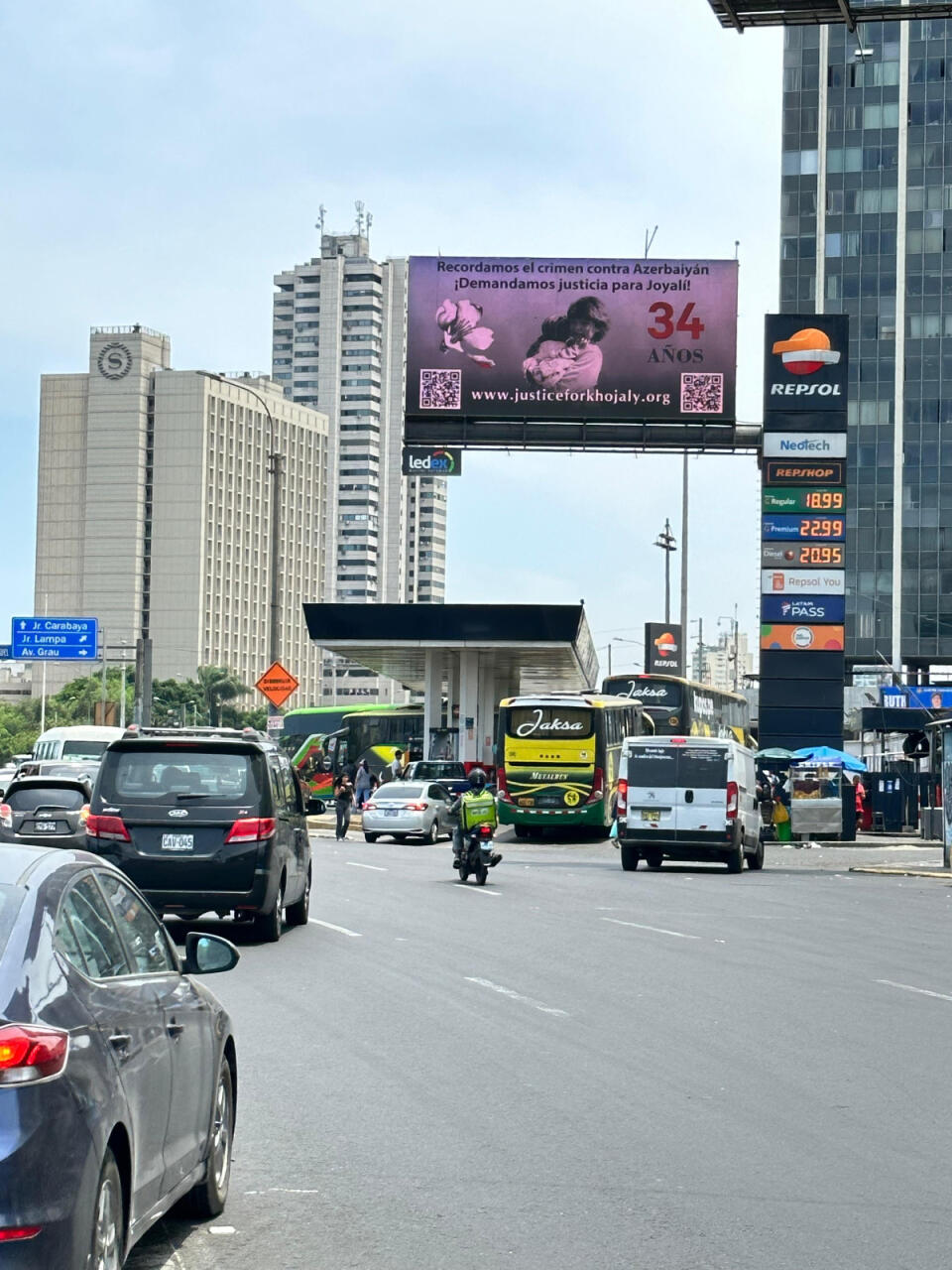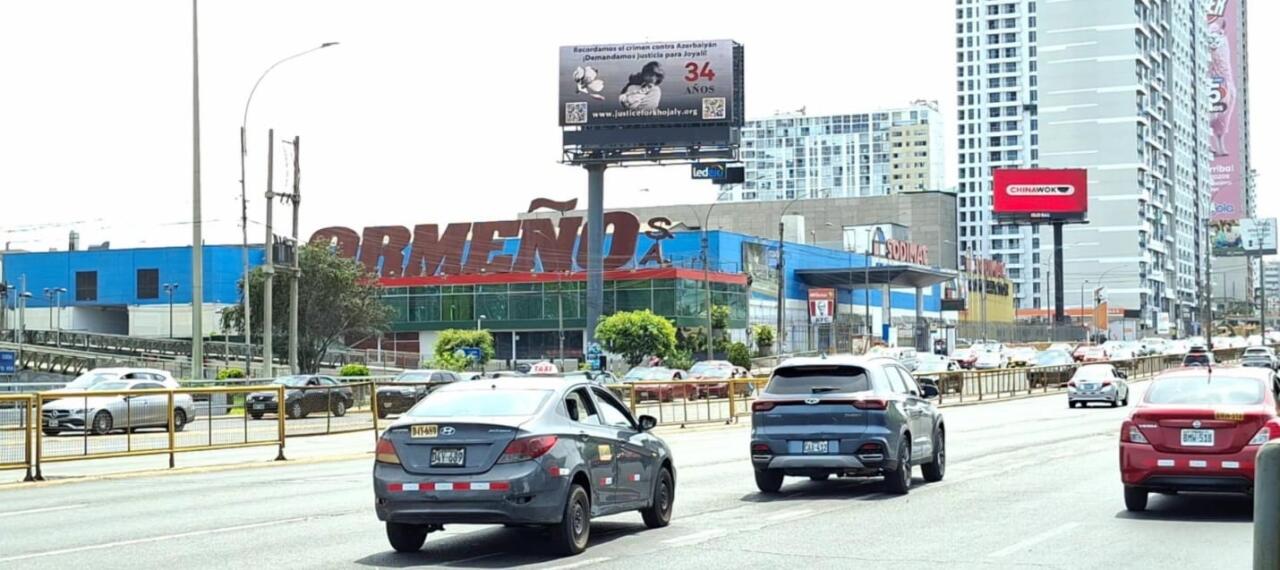 "Xocalıya ədalət" beynəlxalq maarifləndirmə kampaniyası çərçivəsində Xocalı soyqırımının 34-cü ildönümü ilə əlaqədar cari ilin fevralın 25-dən başlayaraq Perunun paytaxtı Lima şəhərinin mərkəzi küçələrində yerləşən böyük ölçülü lövhələrdə "Xocalıya ədalət" çağırışları əks olunub.