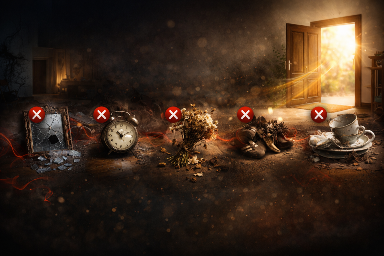Araşdırmalara görə, evdəki gərginliyin və davanın ən böyük səbəblərindən biri çatlamış güzgülər və qırıq şüşələrdir. Hətta gözlə görünməyən kiçik bir çat belə ailə daxilindəki səmimiyyəti sındırır və enerjinin parçalanmasına yol açır. Eyni zamanda, evdə saxlanılan işləməyən saatlar zamanın "donması" mənasına gəlir ki, bu da ev sahiblərinin işlərinin tərs getməsinə və maddi sıxıntılara zəmin yaradır.