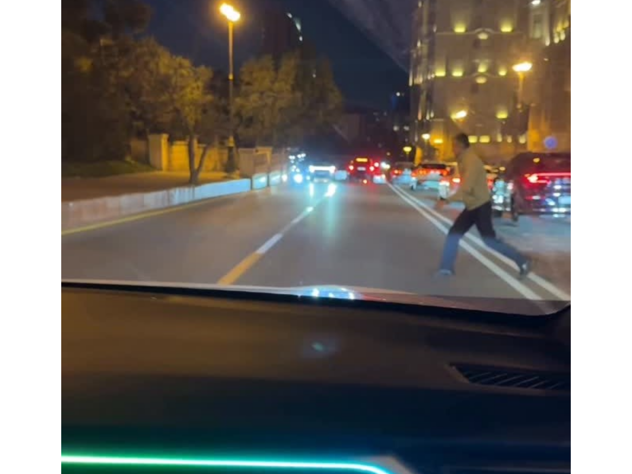 Milli.Az xəbər verir ki, "Alov qüllələri" yaxınlığında baş verən hadisə zamanı sürücü qarşı hərəkət zolağına çıxaraq həm piyadaların, həm də digər nəqliyyat vasitələrinin həyatını riskə atıb. Son anda manevr edərək piyadaları vurmaqdan yayınan taksi sürücüsü eyni zamanda əks istiqamətdən gələn avtomobillə toqquşma təhlükəsi də yaradıb.