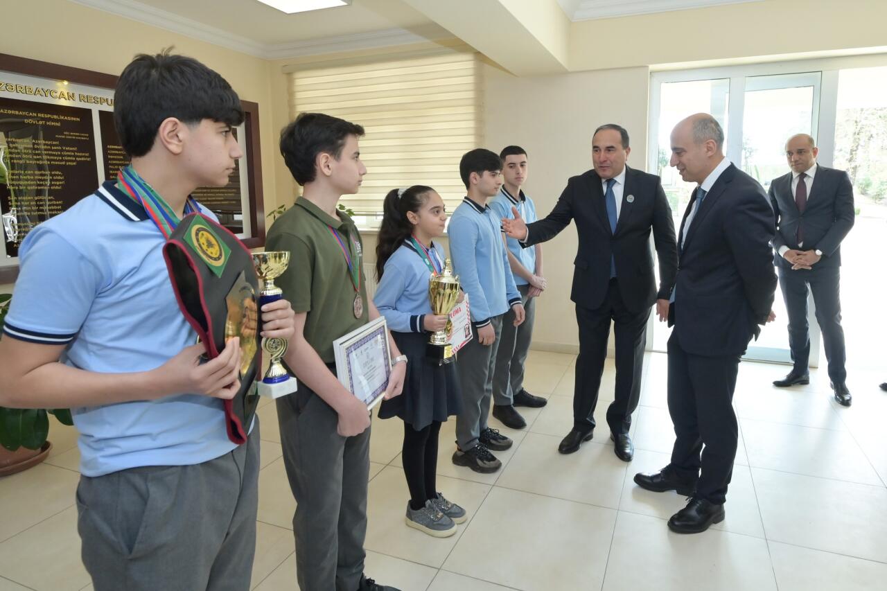 Daha sonra sözügedən təhsil müəssisəsində şəhidlərin xatirəsinə ucaldılmış abidə ziyarət olunub, onların əziz xatirəsi ehtiramla yad edilib.