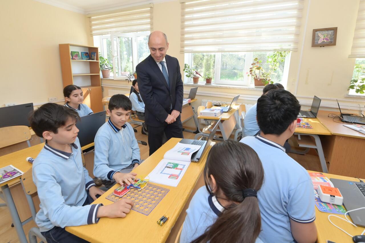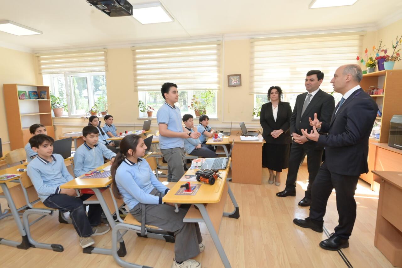 Sonra nazir peşə təmayüllü siniflər, STEAM yanaşmasının tətbiq olunduğu tədris mühiti, müasir tədris metodlarının tətbiqi ilə yaxından tanış olub, eləcə də "Rəqəmsal bacarıqlar" layihəsi çərçivəsində təşkil edilən dərsləri izləyib. Məktəbdə həyata keçirilən tədris prosesi və mövcud infrastruktur barədə nazirə ətraflı məlumat təqdim olunub. Nazir tərəfindən təhsil prosesinin daha da təkmilləşdirilməsi, innovativ yanaşmaların genişləndirilməsi və tədrisin keyfiyyətinin artırılması istiqamətində müvafiq tapşırıq və tövsiyələr verilib.