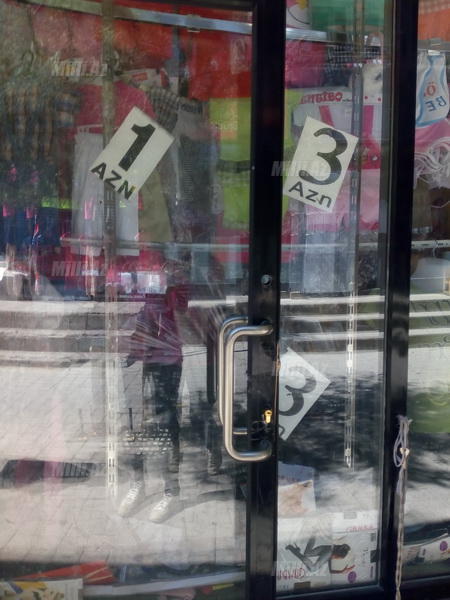 Son dönəmlərdə tez-tez mağazalarda, açıq ticarət mərkəzlərində, bazarlarda çox ucuz qiymətə satılan mallara rast gəlmək olar. Məsələn "8-ci km bazarı", "20 Yanvar" metro stansiyası, "28 May ticarət mərkəzi", "Laçın" ticarət mərkəzinin aşağısı, hətta çox bahalı butiklərin olduğu Nizami küçəsində də çox ucuz qiymətə "şok endirim"li geyimlər satılır: 50 qəpiyə uşaq paltarları, 1,5 manata köynək, 2 manata çanta, 2,5 manata ayaqqabı, 3 manata yubka, 5 manata şalvar, don və s...
