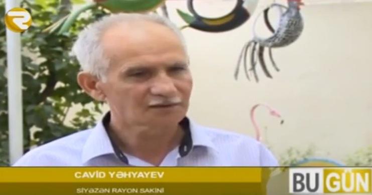 Söhbət 3 ildir köhnə təkərlərdən maraqlı əl işləri düzəldən Siyəzən rayon sakini Cavid Yəhyayevdən gedir. İxtisasca neft mühəndisi olan Cavid Yəhyayevin belə fiqurları düzəltməkdə məqsədi təbiəti artıq tullantılardan təmizləməkdir.