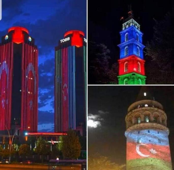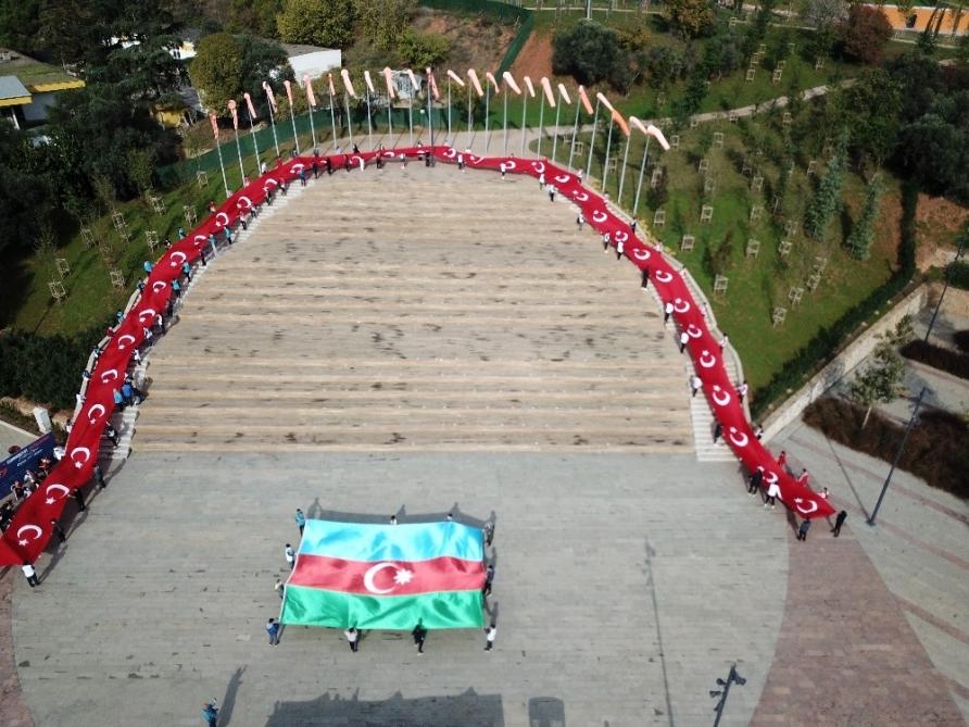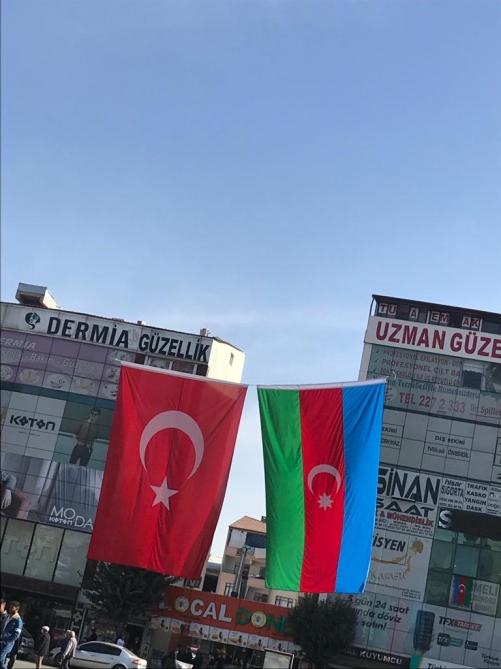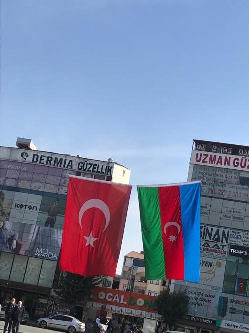 Ermənistanın işğalçılıq siyasətini davam etdirməsi və hərbi təxribatları səbəbindən Ordumuzun həyata keçirdiyi əks-hücum əməliyyatları başlayan andan bəri üçrəngli, ay-ulduzlu bayrağımız da qardaş Türkiyənin ən gözəl məkanlarına yaraşıq verir. Bu məhəbbət Türkiyənin göstərdiyi siyasi və mənəvi dəstəyin bariz göstəricisi kimi tarixə düşüb. İki qardaş ölkənin bayraqları qoşa dalğalananda isə daha əzəmətli görünür.