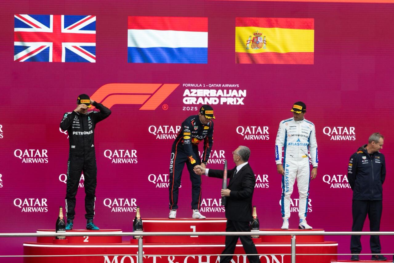 Milli.Az xəbər verir ki, Bakıda keçirilmiş əsas yarışda "Formula 1" üzrə Azərbaycan Qran-prisinin qalibi olan "Red Bull" pilotu Maks Ferstappenə kubok təqdim olunub.